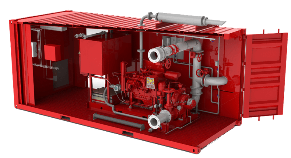 По способу размещения и комплектности пожаротушения насосные станции предлагаются в следующих вариантах изготовления: на раме внутри капитального здания, в блок-боксе или контейнере, на колесной раме или с возможностью установки на понтонах и салазках, а также как единое интегрированное решение