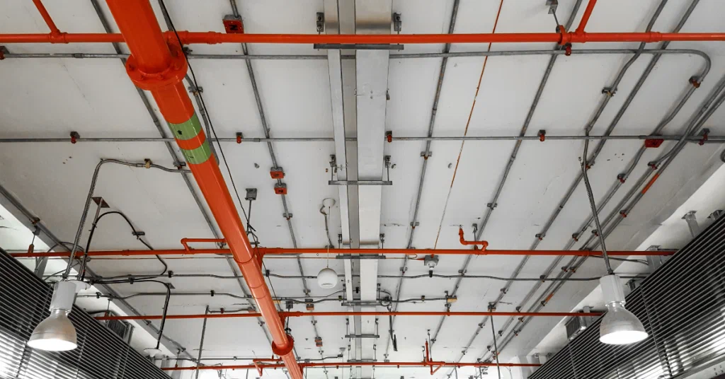 Пожарная сигнализация или спринклерная система обнаруживают возгорание