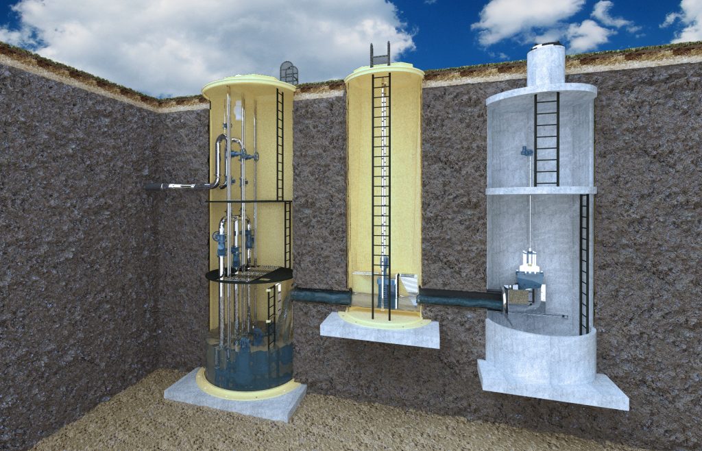 КНС оснащены рабочими и резервными насосами (погружные, сухие насосы и насосы в обсадных трубах), которые позволяют поднимать стоки на более высокий уровень, что важно для нормального функционирования канализационных систем даже в низко расположенных районах