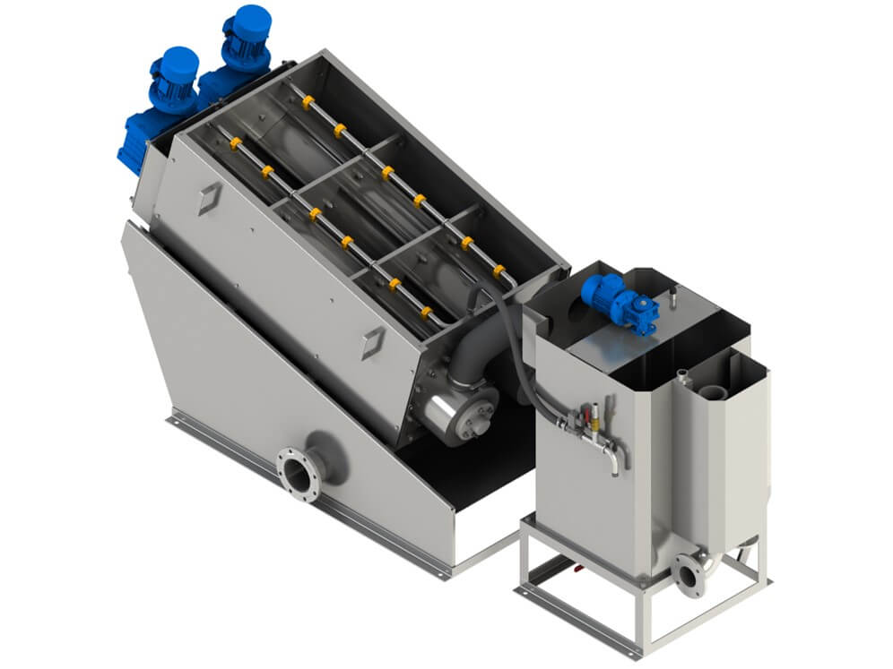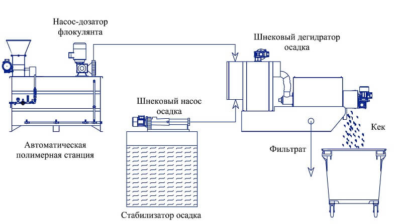для перемешивания и подачи сточной воды через систему фильтрации и прессования, что способствует более эффективному удалению влаги