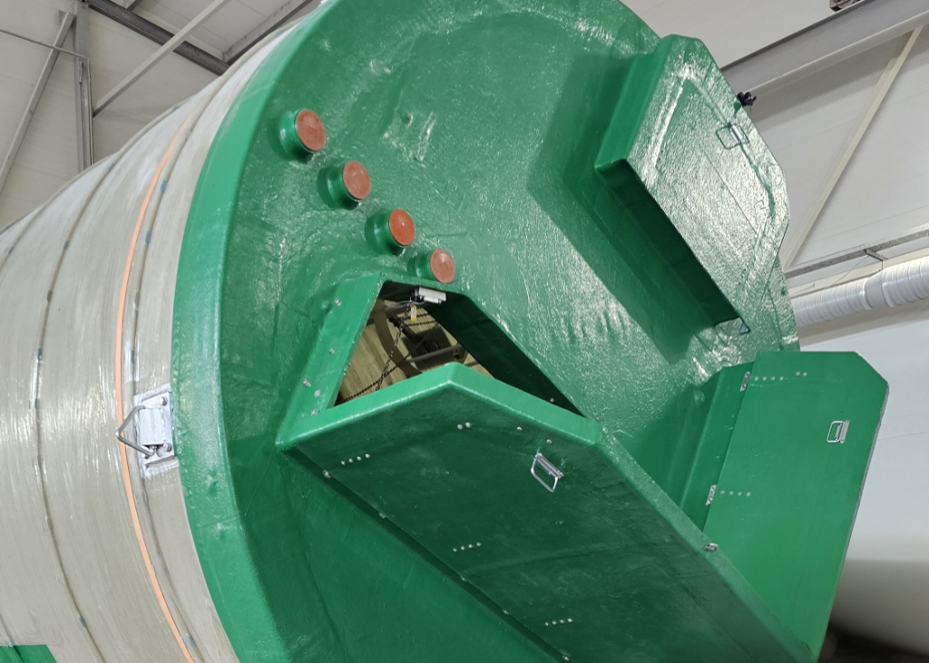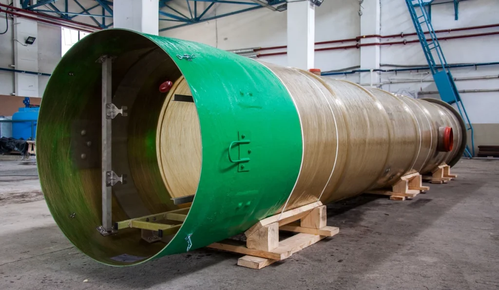 1. Корпус: Цилиндрическая емкость из стеклопластика, устойчивая к агрессивным средам. Толщина стенки рассчитана на высокие нагрузки при подземных установках.