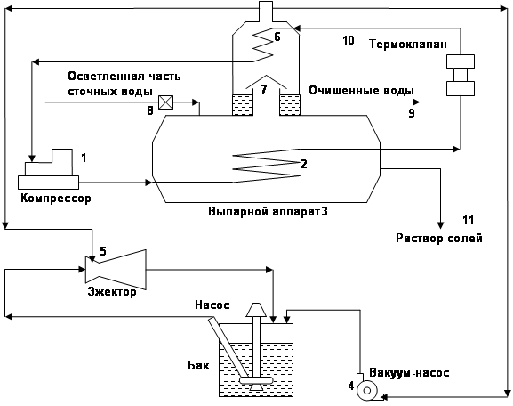 Система автоматически регулирует разность температур, давлений, и расходы, обеспечивая стабильный и непрерывный процесс выпаривания