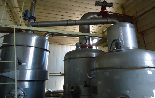 Оставшийся пар поступает в конденсатор, где превращается в воду, а концентрат с высокой концентрацией продукта выходит из последнего корпуса