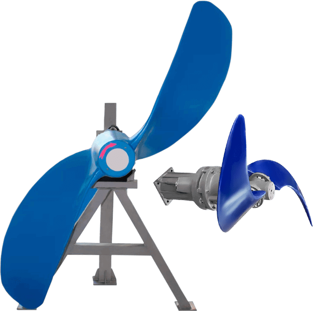 Используют лопасти для перемешивания жидкости. Они могут быть вертикальными или горизонтальными