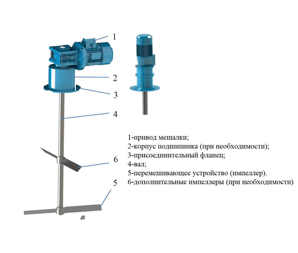 Конструкция тихоходной мешалки зависит от ее назначения и свойств обрабатываемой среды, но ключевыми характеристиками являются: