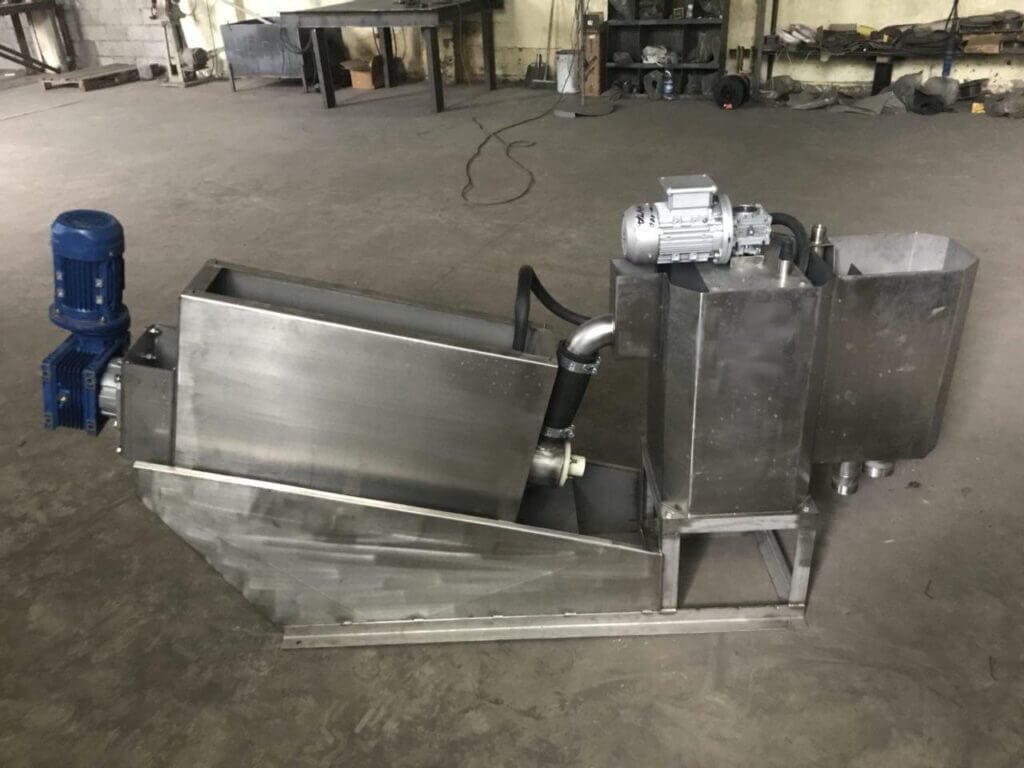 Затем масса поступает в зону прессования, где обезвоживающий барабан и шнек работают совместно. Регулируемый зазор между этими элементами позволяет адаптироваться к разной вязкости. На поверхности барабана установлена тонкая решетка (сито), которая задерживает твердые фракции