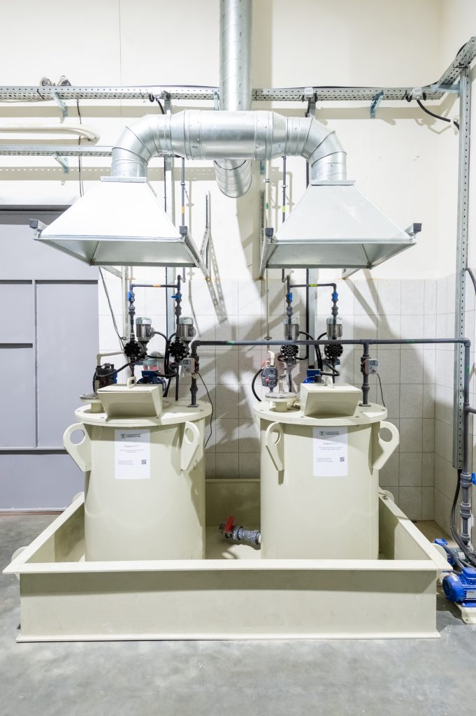Обработанные стоки подают через трубный флокулятор в тонкослойный отстойник, где раствор флокулянта образует укрупнённые хлопья осадка