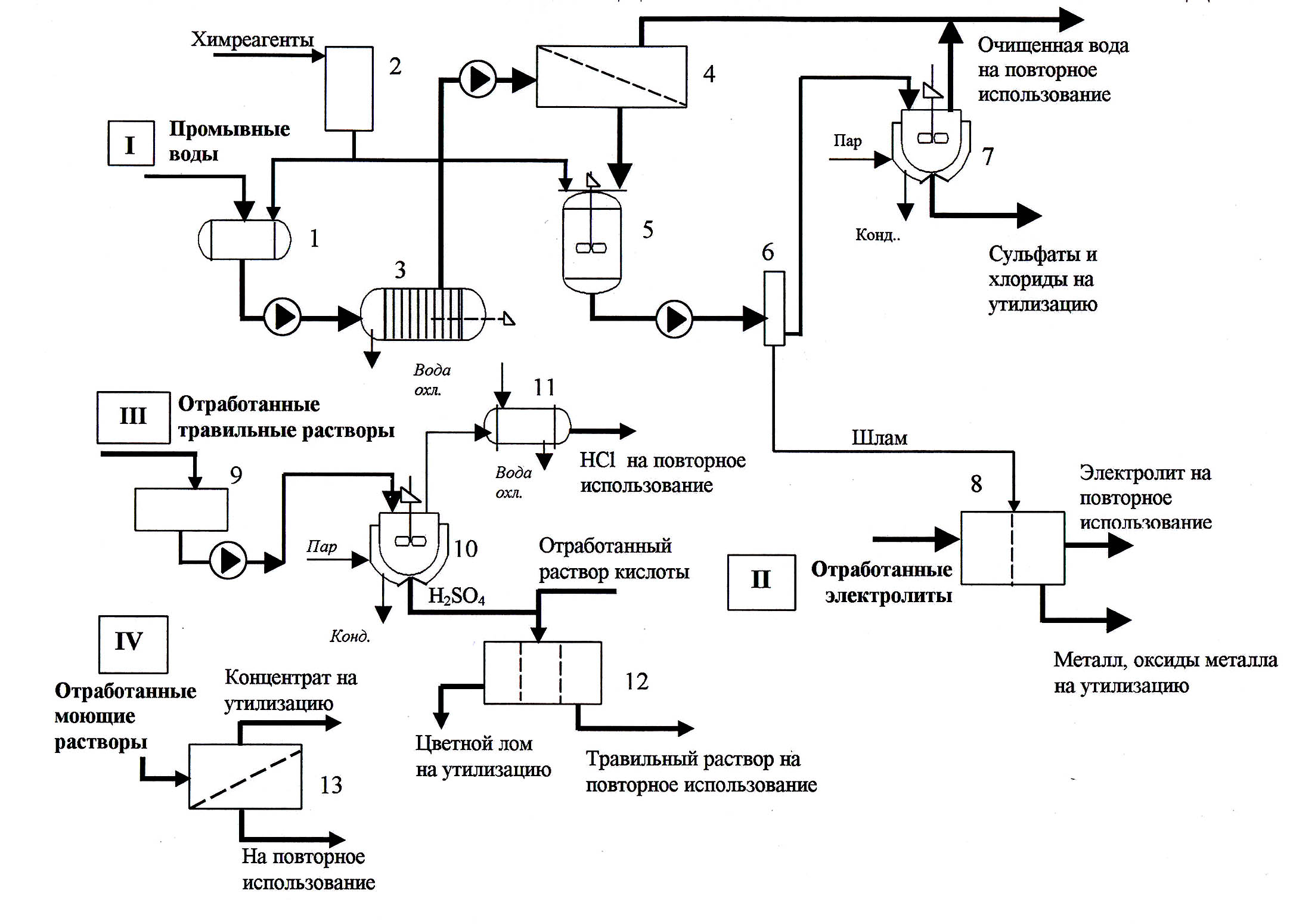 — Воды, полученные в результате промывки изделий в непроточных ваннах, а также при каскадной промывке и после регенерации ионообменных фильтров (регенераты). Концентрация загрязняющих веществ в таких водах составляет от 1 до 20 мг/л