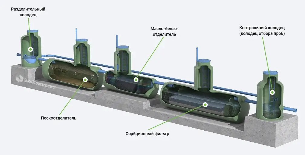 Все стыки, соединения и технологические отверстия герметизируются. При необходимости устанавливаются теплоизоляционные или антикоррозионные покрытия (в случае с металлическими отстойниками)