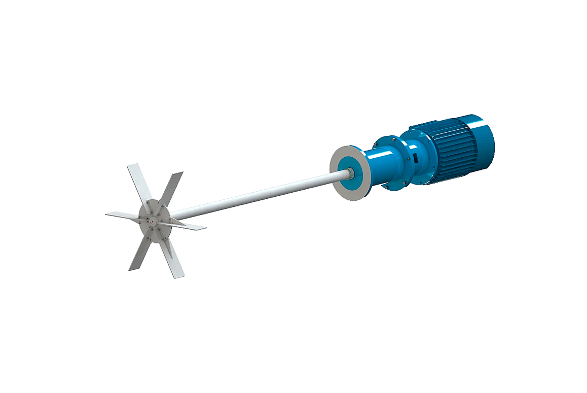 Погружные мешалки: Устанавливаются непосредственно внутри резервуара со сточными водами. Они применяются для поддержания твердых частиц во взвешенном состоянии и гомогенизации гидросмесей в отстойниках и накопителях. Такие мешалки часто используются на очистных сооружениях крупных промышленных объектов, таких как кожевенные производства или биотехнологические комплексы . Некоторые модели могут комплектоваться взрывозащищенным исполнением для работы в особых условиях .