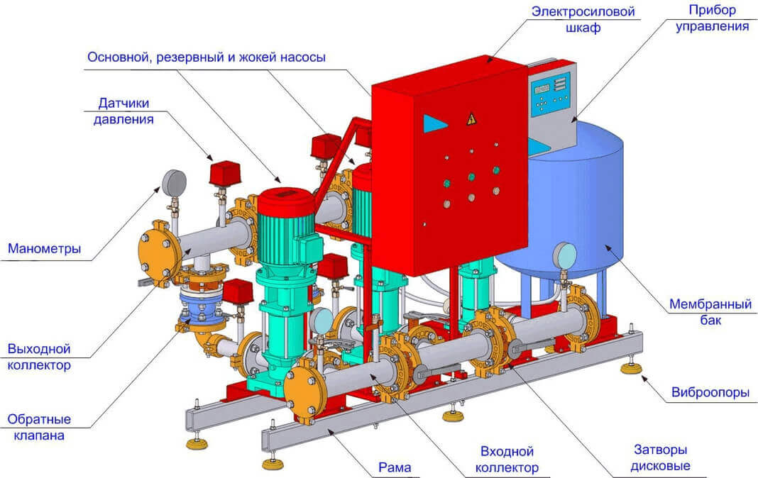 — Обеспечивает необходимое давление и подачу воды в систему при срабатывании пожарной сигнализации. Может быть центробежным или вертикальным многоступенчатым