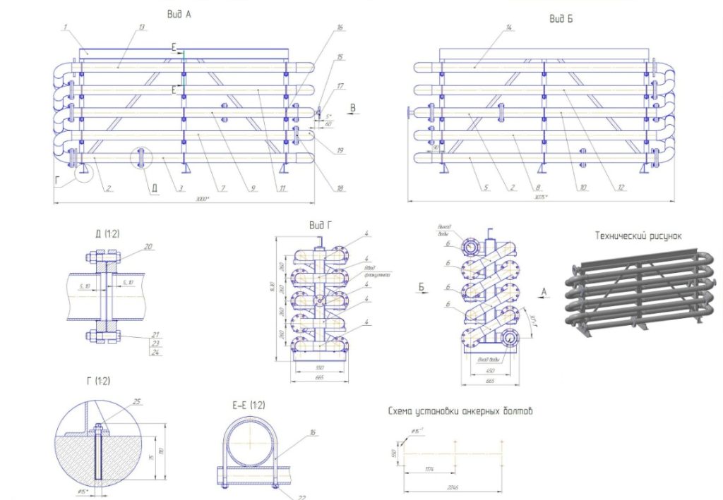 подбор диаметра труб, конфигурации узлов и компоновки оборудования