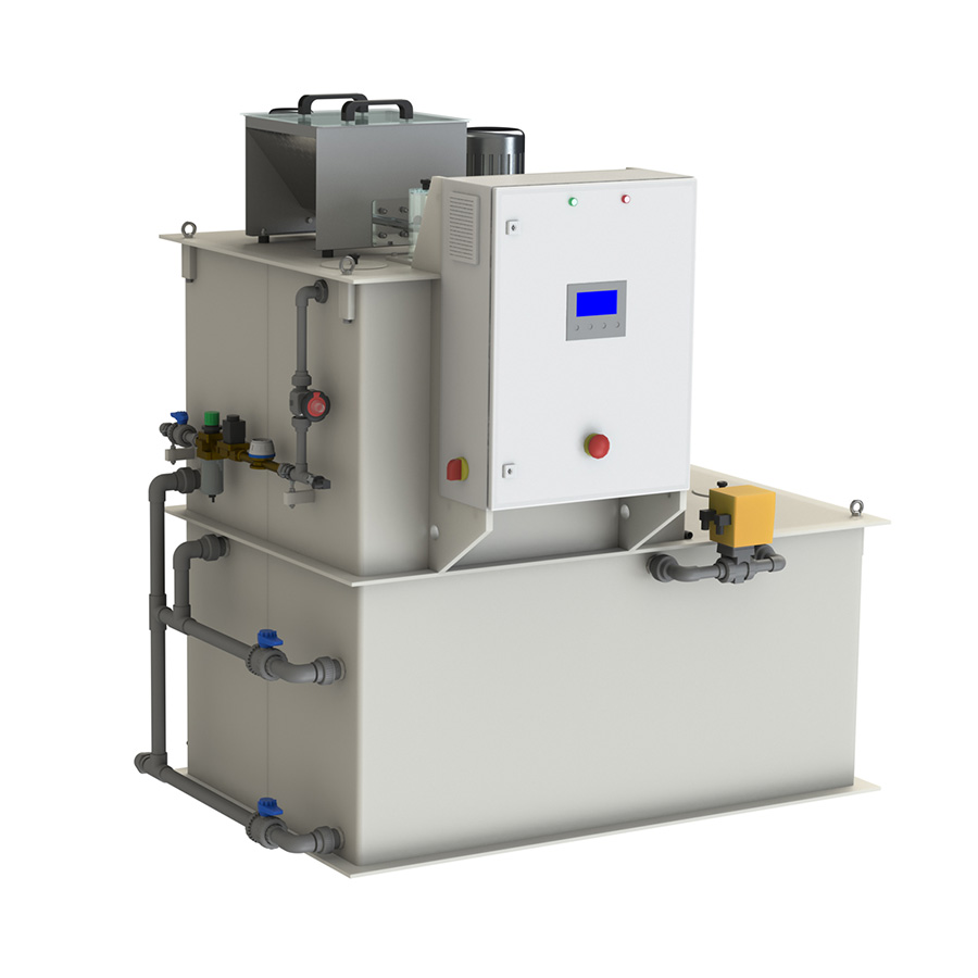 Установка приготовления и дозирования реагентов представляет собой растворно-расходную емкость с мешалкой и насосом-дозатором, с помощью которых готовятся и дозируются различные виды реагентов, применяемых в промышленности, а конкретно в системах очистки сточных вод. Установка приготовления и дозирования реагентов предназначена для приготовления рабочих растворов коагулянтов, флокулянтов кислоты или щелочи, которые используются для обработки сточных вод или промышленной водоподготовки. Приготовление раствора осуществляется с помощью перемешивающего устройства. Полученный раствор дозируется с помощью насоса дозатора