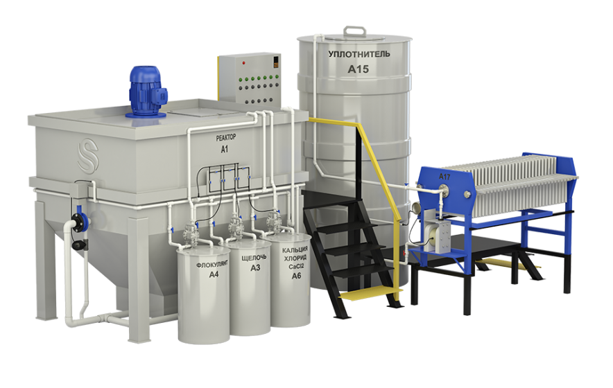 В реакционных емкостях осуществляется изменение pH с помощью кислот и щелочей. Это позволяет перевести растворённые соединения в нерастворимую форму