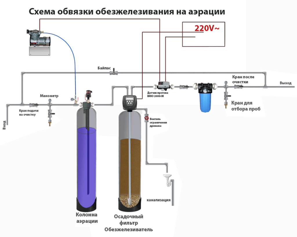 аэрация + обезжелезивание + умягчение воды