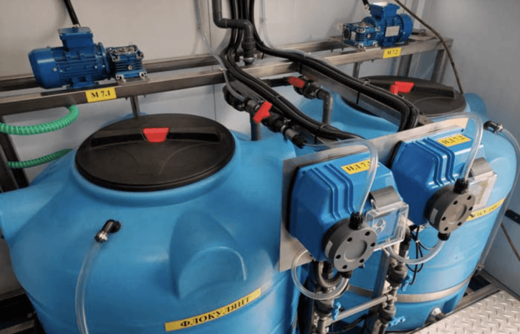 Емкости — из полиэтилена, полипропилена или стеклопластика (для кислот, щелочей, флокулянтов)