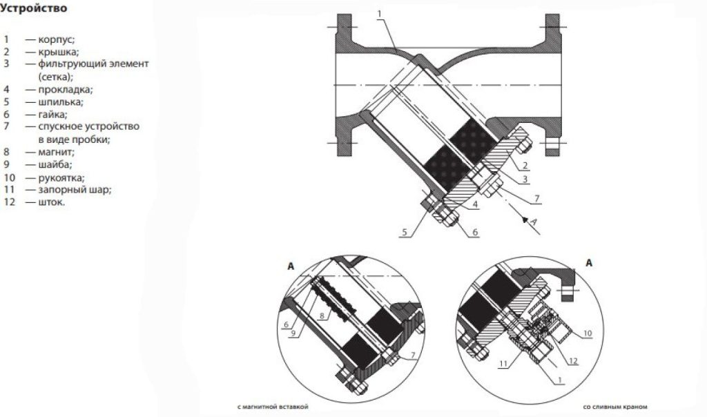 Фильтр сочетает механическую очистку сеткой и удаление металлических примесей магнитом, обеспечивая двойную защиту системы