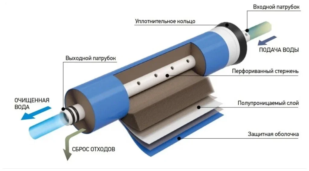 Обратный осмос — это современный метод очистки воды, основанный на прохождении жидкости через полупроницаемую мембрану под высоким давлением. В отличие от обычных фильтров, которые улавливают только крупные частицы, обратный осмос задерживает до 99% всех примесей, включая растворённые соли, тяжелые металлы, бактерии, вирусы и химикаты. Основной механизм заключается в том, что молекулы воды проходят через мембраны, а все нежелательные вещества остаются по другую сторону