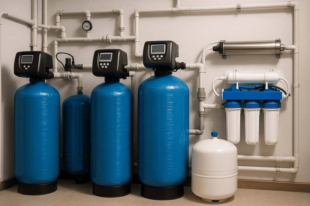 Надежность: Использование качественных комплектующих (клапаны Fleck, Runxin, корпуса из стеклопластика) гарантирует бесперебойную работу системы.