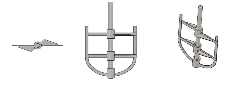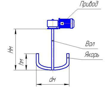 Одной из особенностей якорной мешалки является форма рабочего органа — лопастные элементы или рама в виде якоря